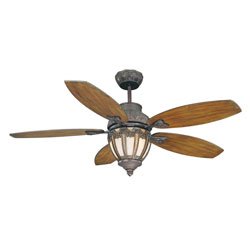 Reminiscent of the English countryside, Tracy Porter introduces this warm fan in bark and gold finish with pale cream Scavo glass. Voltage: 120V. UL listing: Wet Locations. Connection: Hardwire. Model number: 52-8050-5WA-52. Read more...