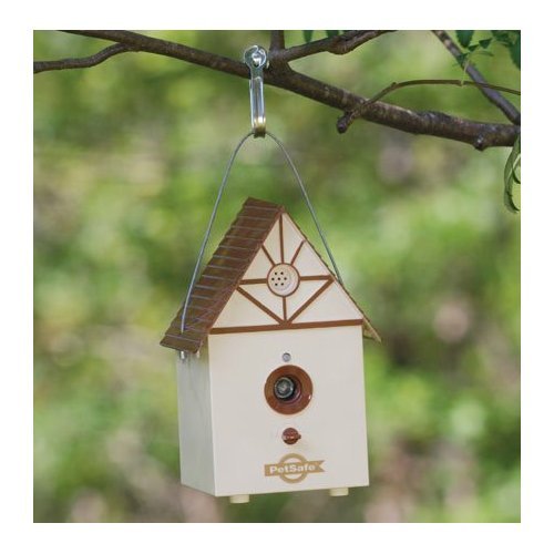 If your neighbor's hound likes to howl or you have the canine equivalent of an opera singer in the area, this outdoor bark control can bring relief. It looks like a birdhouse but emits an ultrasonic sound that is inaudible to the human ear but quiets any dogs within a 50-foot radius. Durable, weatherproof device has four settings and includes a metal hanger that makes mounting the bark control to a post or tree easy. Uses a 9 Volt battery (not included). Read more...